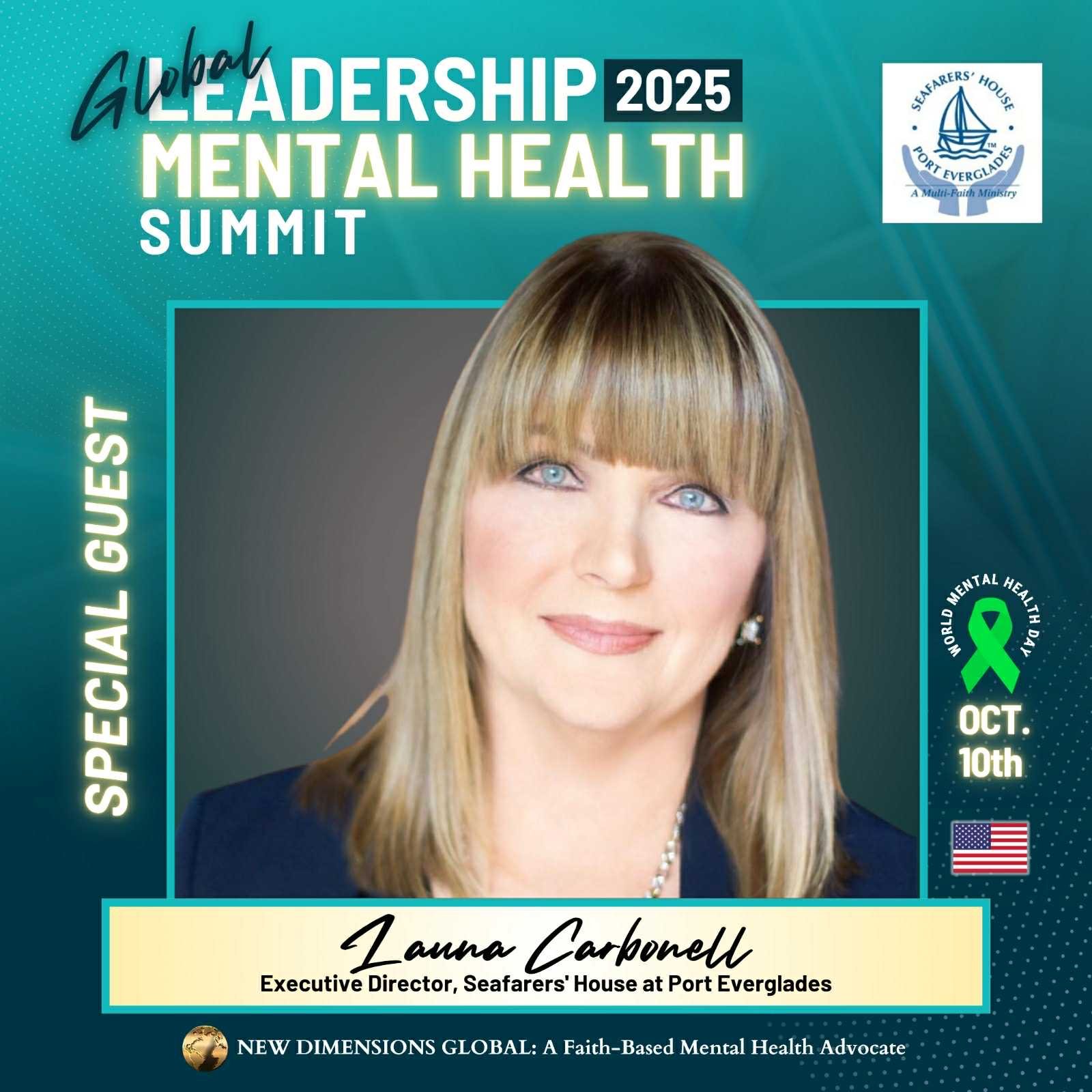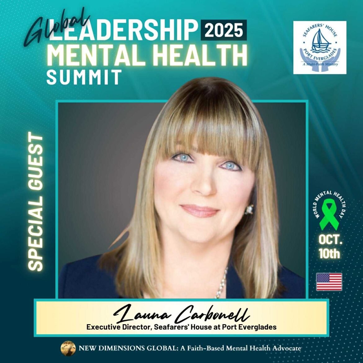 In the ongoing pursuit to build a world where compassion, service, and leadership intersect, the Global Leadership Mental Health Summit 2025 is proud to announce the participation of Launa Carbonell, MBA, the Executive Director of Seafarers House Port Everglades. Her presence adds a powerful voice to this year’s discussions on mental health, leadership, and human dignity.